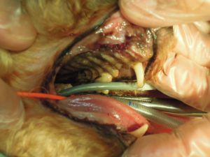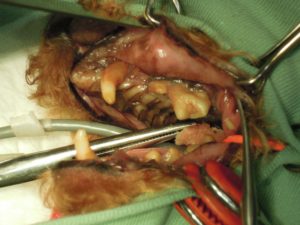 今まで他院では「腎臓などに問題がある」という事で手術を控えていましたが、術前検査で全身状態を確認し、麻酔に注意しながら手術は可能と判断し、歯科処置を実施しました。