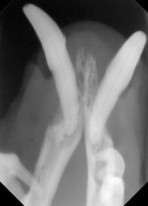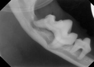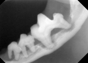 3.レントゲンでは、顎の骨が歯周病により骨折しやすい状態が確認されます。