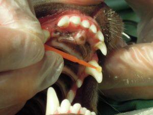 今後、生活習慣でケージの柵など硬い物を咬むことがないように注意をしていただき、定期的に自宅での口腔内ケアと病院での歯科検診をお願いしました。