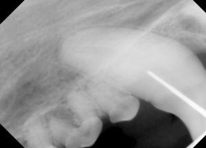 1.右側外観です。上顎犬歯、臼歯付近に腫瘤病変が認められます。