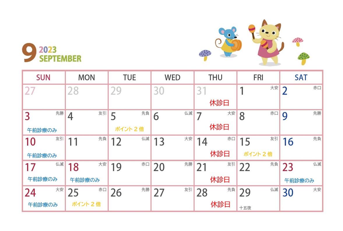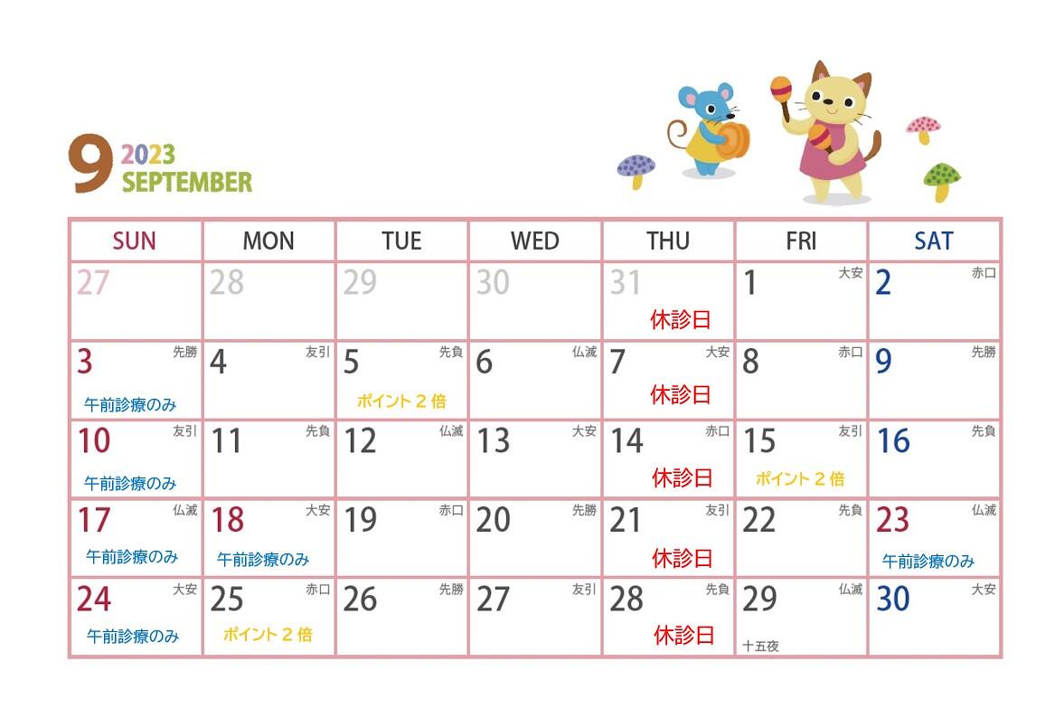 9月休診日のお知らせ