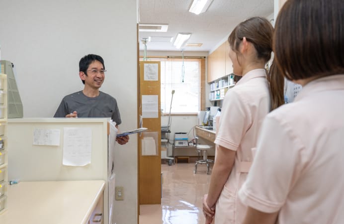 午後の診療も、午前と同様に診察補助や検査業務をチームで協力して進めます。